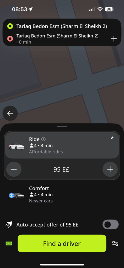 Insgesamt hat sich inDrive für mich als praktischste und günstigste Lösung für den Alltag in Ägypten erwiesen. Besonders für Touristen ist es eine entspannte Möglichkeit, Stress und überteuerte Fahrten zu vermeiden.